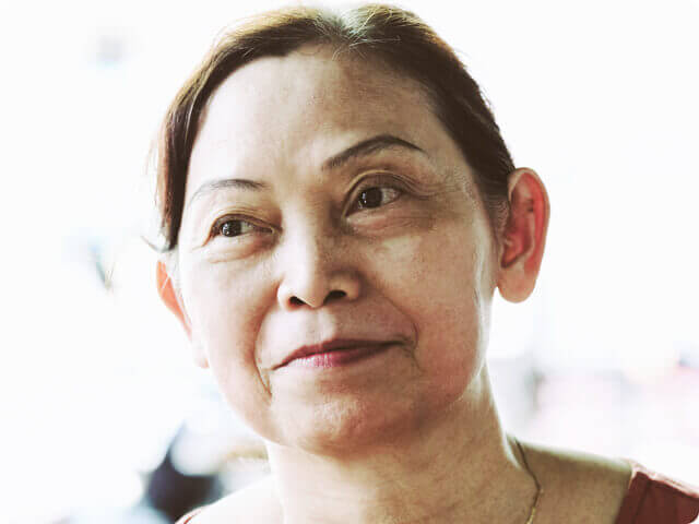 年齢を重ねると、肌の弾力が失われるだけでなく、肌を支える筋肉も萎縮していきます。特に顔にある表情筋が加齢によって衰えてくると、まぶたや頬を支えることができなくなり、全体的に下垂していきます。